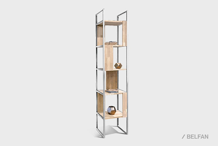 Узкий стеллаж Art Collection («Арт Коллекшен») 430 с 4-мя секциями из массива дуба на металлическом каркасе.