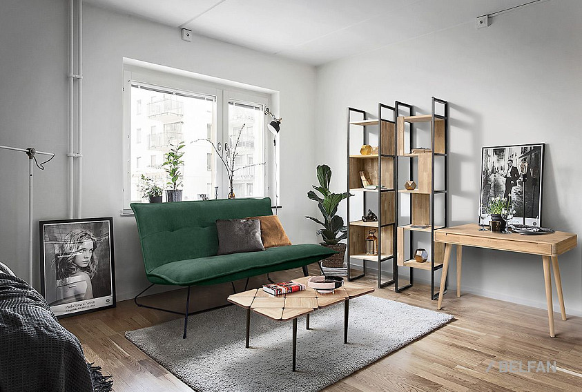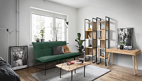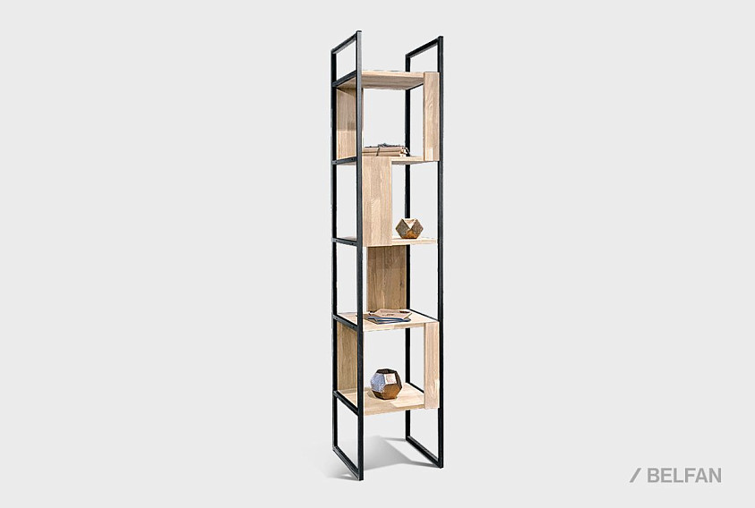 Узкий стеллаж Art Collection («Арт Коллекшен») 430 с 4-мя секциями из массива дуба на металлическом каркасе.