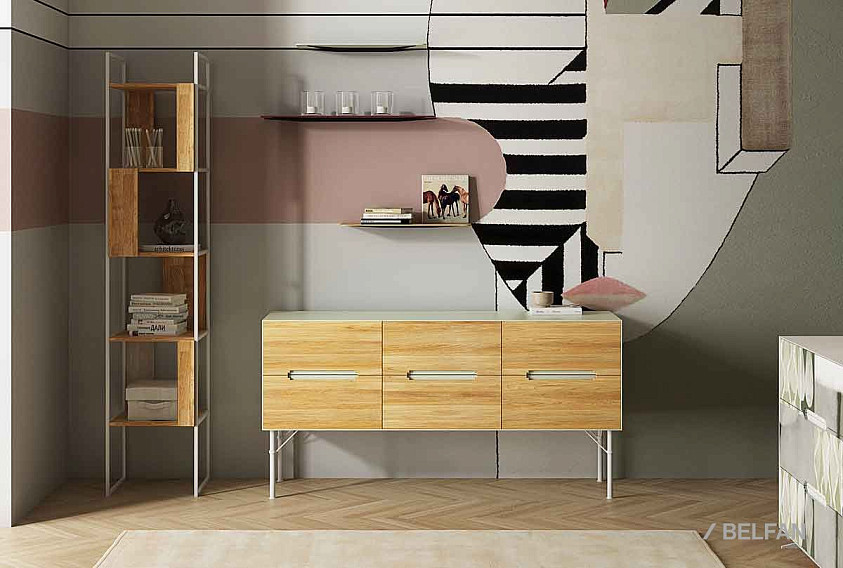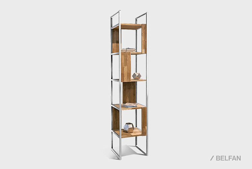 Узкий стеллаж Art Collection («Арт Коллекшен») 430 с 4-мя секциями из массива дуба на металлическом каркасе.