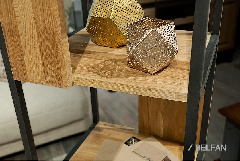 Узкий стеллаж Art Collection («Арт Коллекшен») 430 с 4-мя секциями из массива дуба на металлическом каркасе.