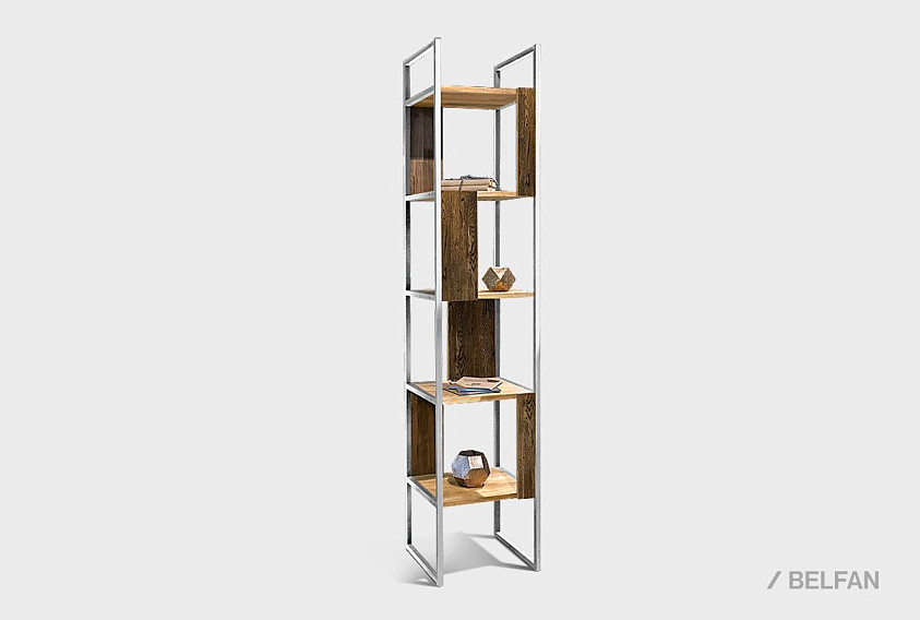 Узкий стеллаж Art Collection («Арт Коллекшен») 430 с 4-мя секциями из массива дуба на металлическом каркасе.
