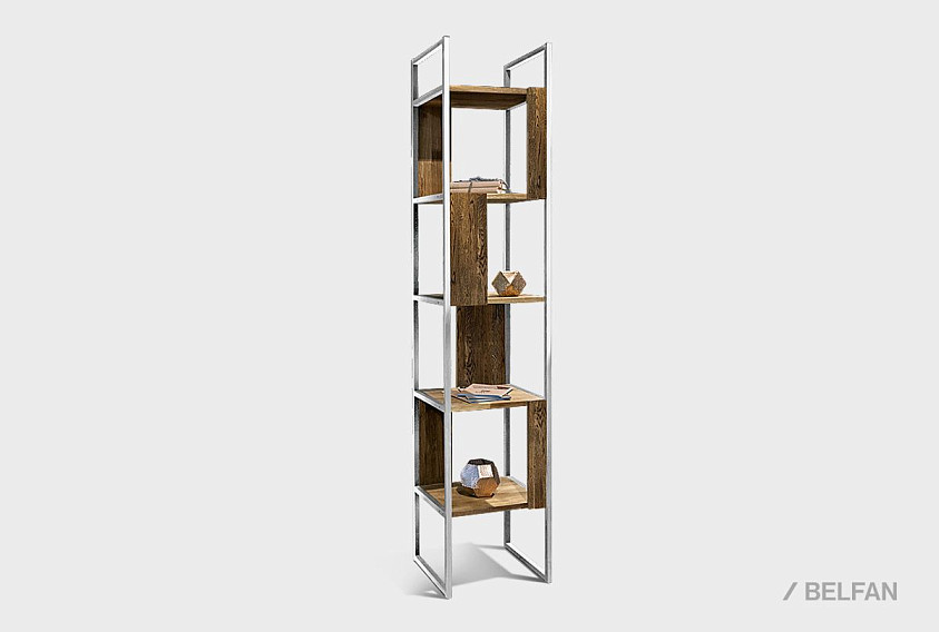 Узкий стеллаж Art Collection («Арт Коллекшен») 430 с 4-мя секциями из массива дуба на металлическом каркасе.