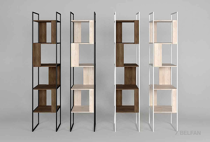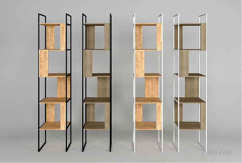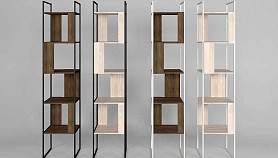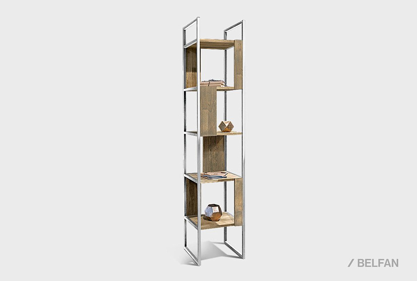 Узкий стеллаж Art Collection («Арт Коллекшен») 430 с 4-мя секциями из массива дуба на металлическом каркасе.