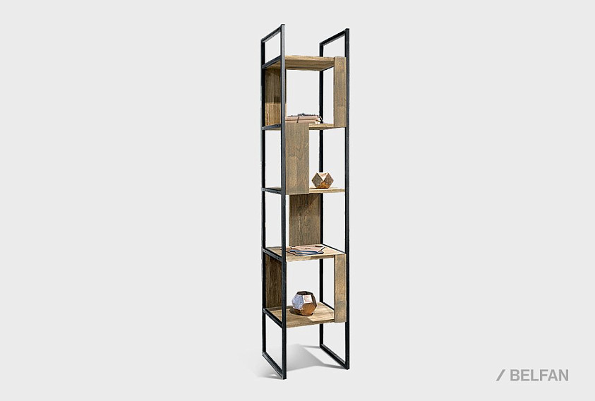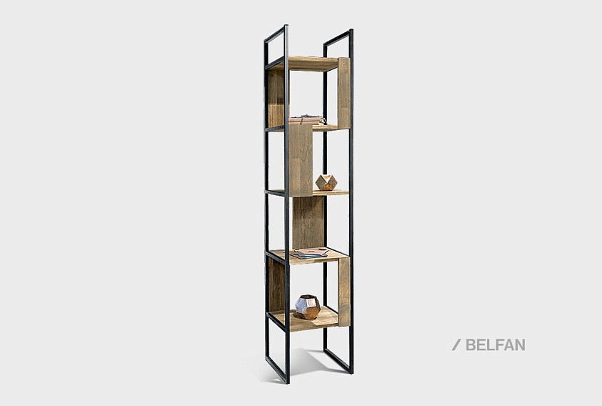 Узкий стеллаж Art Collection («Арт Коллекшен») 430 с 4-мя секциями из массива дуба на металлическом каркасе.
