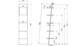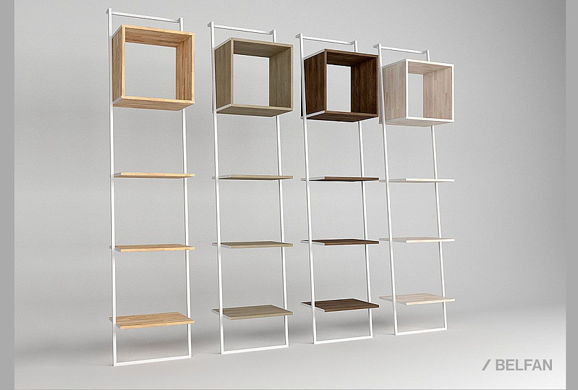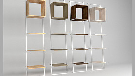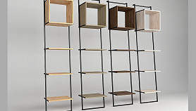 Наклонный узкий стеллаж Art Collection (Арт Коллекшен) 440 с тремя полками и нишей из массива дуба на металлическом каркасе.