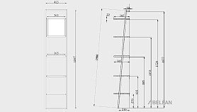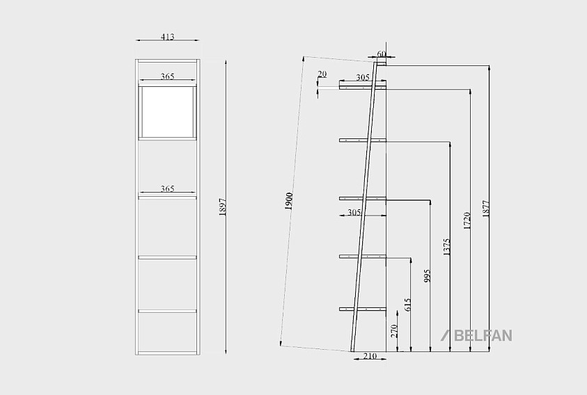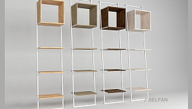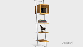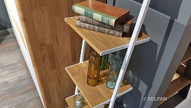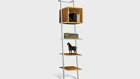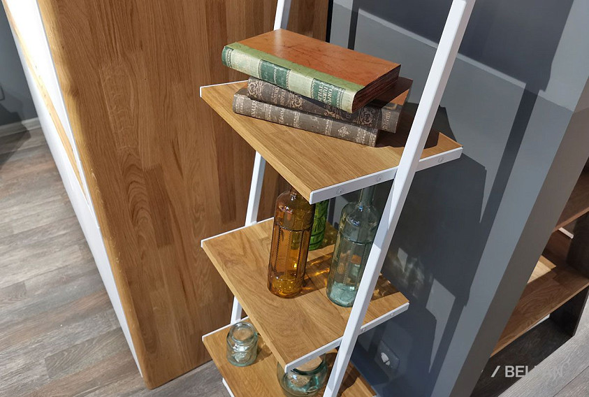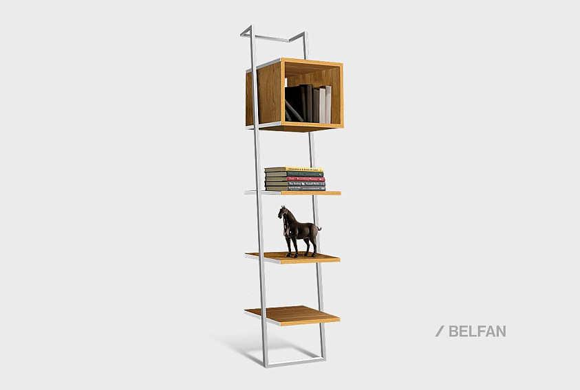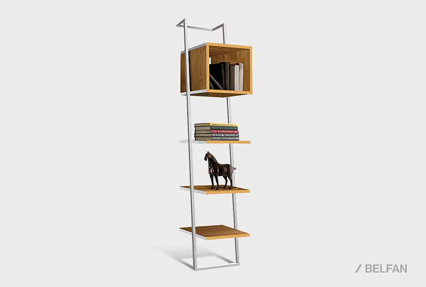 Наклонный узкий стеллаж Art Collection (Арт Коллекшен) 440 с тремя полками и нишей из массива дуба на металлическом каркасе.