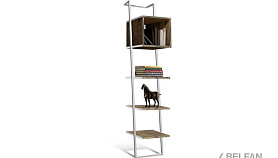 Наклонный узкий стеллаж Art Collection (Арт Коллекшен) 440 с тремя полками и нишей из массива дуба на металлическом каркасе.
