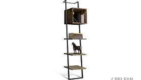 Наклонный узкий стеллаж Art Collection (Арт Коллекшен) 440 с тремя полками и нишей из массива дуба на металлическом каркасе.