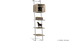 Наклонный узкий стеллаж Art Collection (Арт Коллекшен) 440 с тремя полками и нишей из массива дуба на металлическом каркасе.