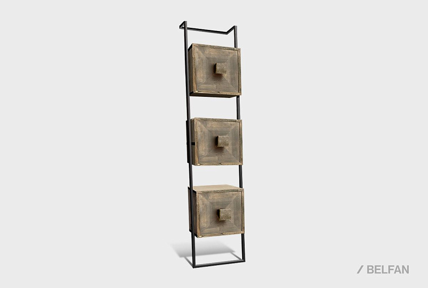 Узкий трехсекционный стеллаж Art Collection (Арт Коллекшен) 441 изготовлен из массива дуба на металлическом каркасе.