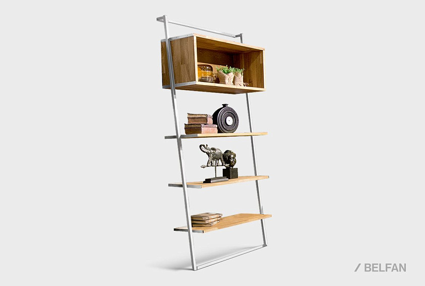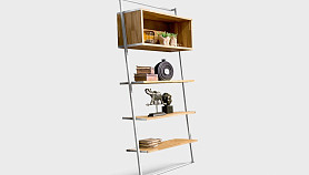 Стеллаж "Art Collection" 445; пристенный наклонный; бейц-масло, белый металл