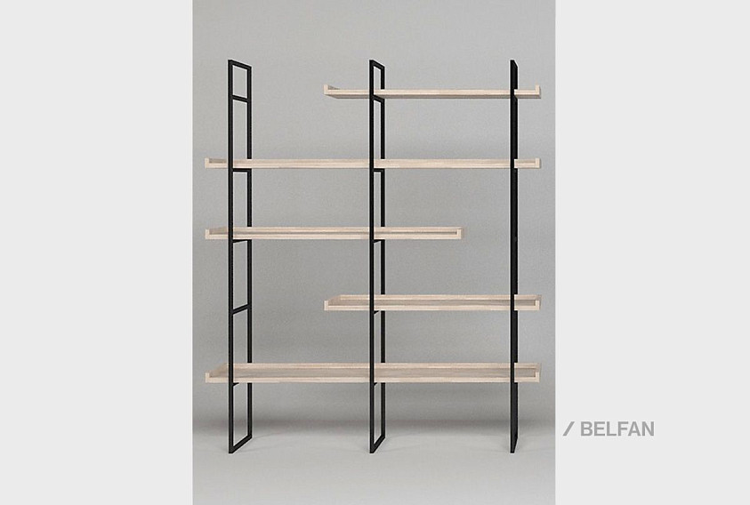 ? Благодаря изящному металлу и комбинированию разной длины полок, стеллаж визуально расширит пространство.