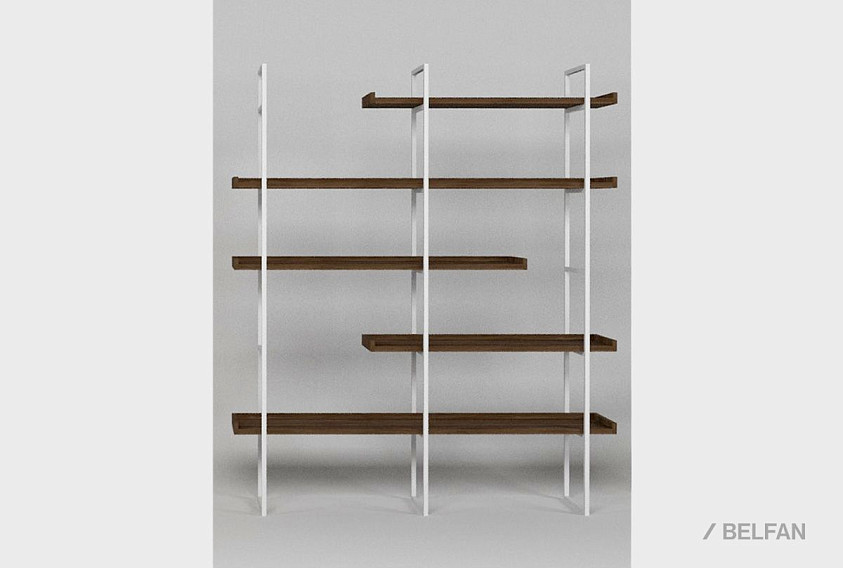 ? Благодаря изящному металлу и комбинированию разной длины полок, стеллаж визуально расширит пространство.