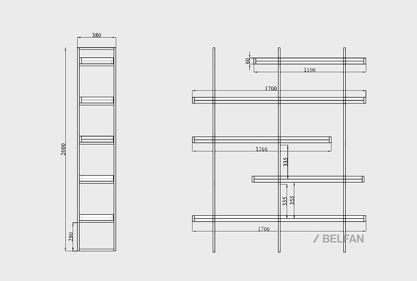 ? Благодаря изящному металлу и комбинированию разной длины полок, стеллаж визуально расширит пространство.