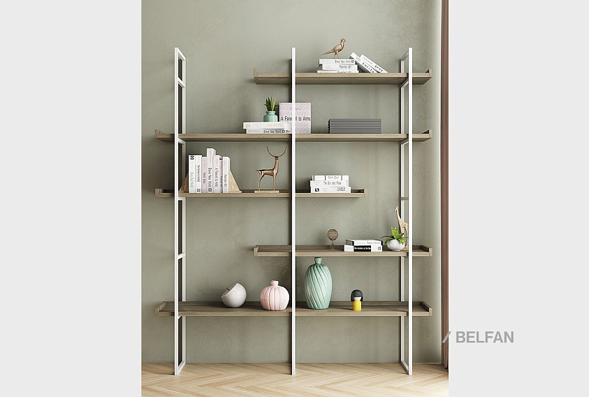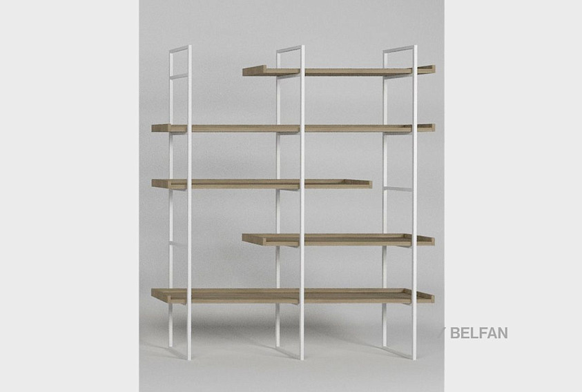 ? Благодаря изящному металлу и комбинированию разной длины полок, стеллаж визуально расширит пространство.