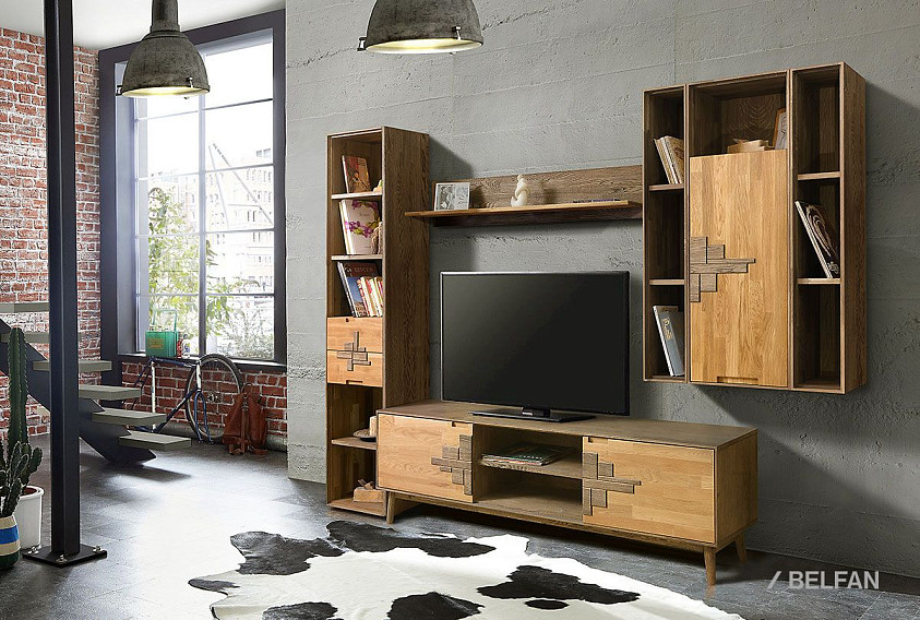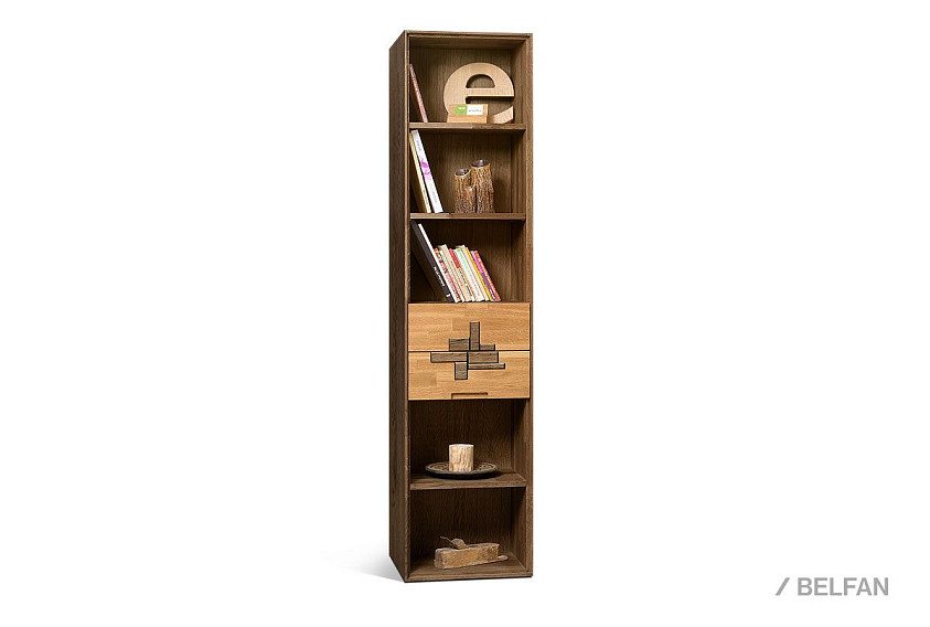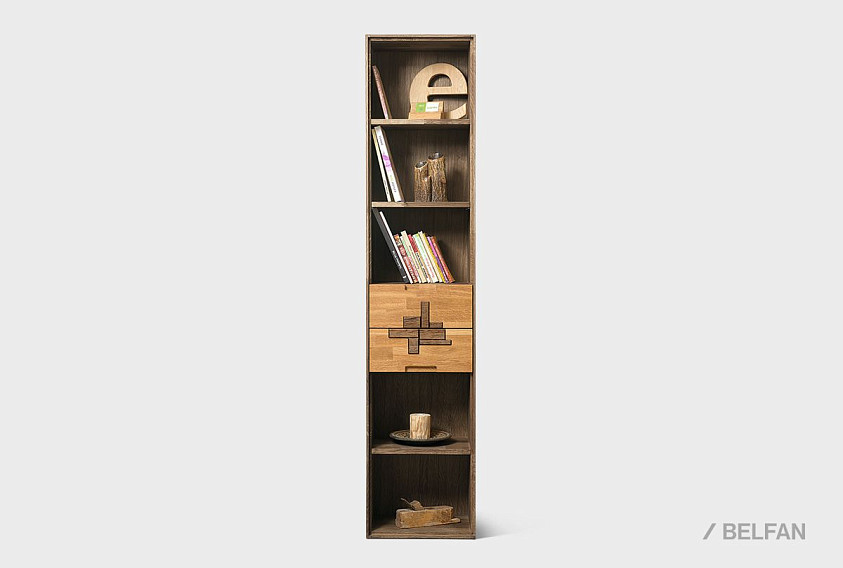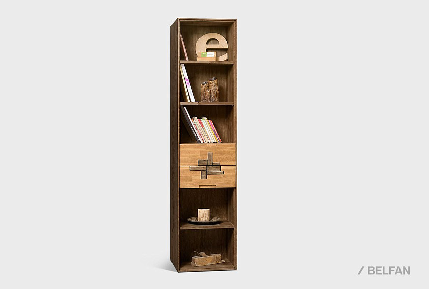 Узкий стеллаж с ящиками из коллекции Irving Design («Ирвинг дизайн»), изготовлен из массива дуба.
