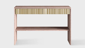 Стол-консоль «Меридиан» — изящный акцент, который способен объединить пространство или мягко выделиться на фоне интерьера. Прямолинейная форма корпуса контрастирует с художественным рельефом фронтальной панели.