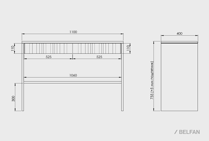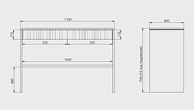 ? Размеры: ширина — 1100 мм, глубина — 400 мм, высота — 760 мм.