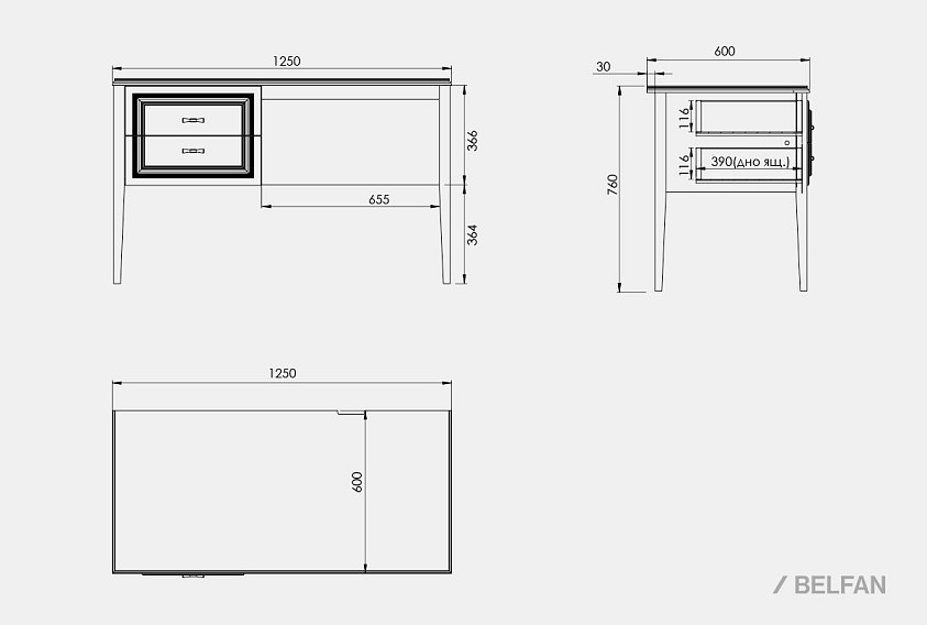 ? Свободное пространство под столешницей (ширина 655 мм) обеспечивает удобное размещение кресла и комфорт при работе за компьютером или с бумагами.
