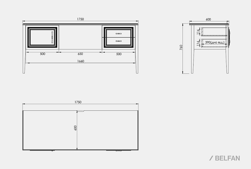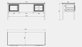 ? Размеры: ширина 1750 мм, высота 760 мм, глубина 600 мм.
