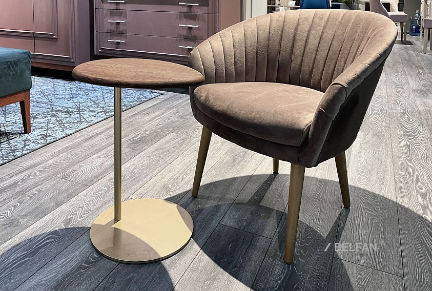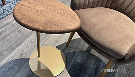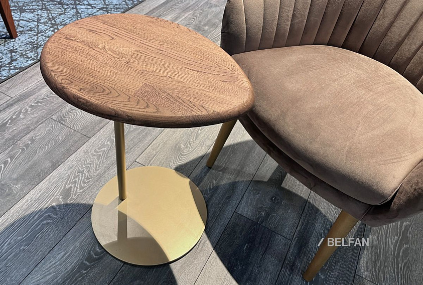 Изящный приставной стол с асимметричной округлой столешницей — это не просто функциональный элемент, а акцентный объект интерьера. Благодаря компактным размерам и лёгкой конструкции он легко перемещается и становится удобным спутником в любой зоне: у дивана, кресла или даже у кровати.