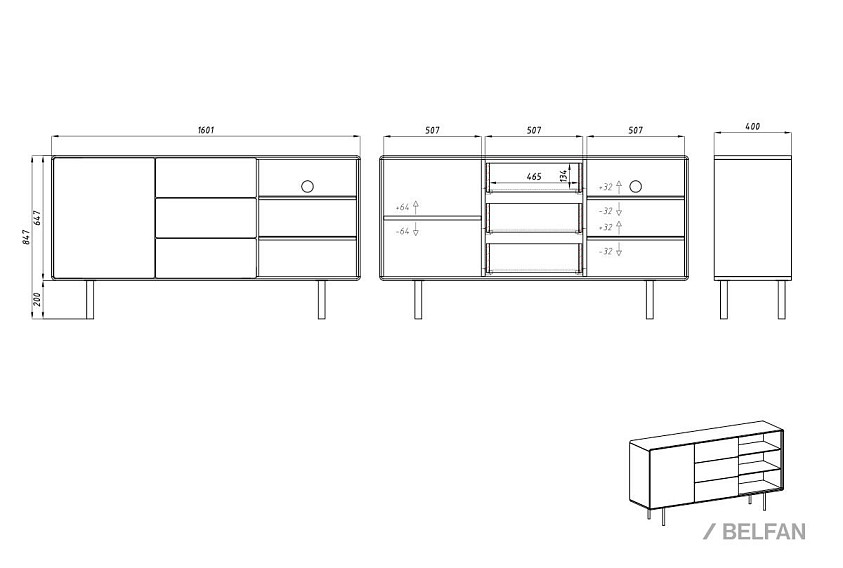 Тумба "Norman" 3 с нишей (правая); дуб натуральный, белый