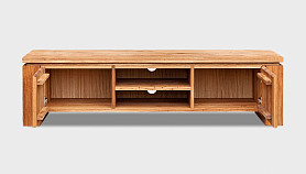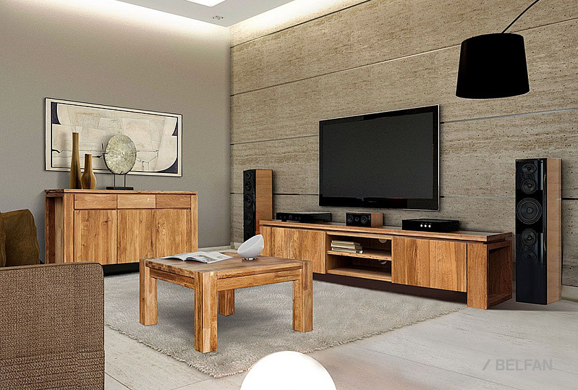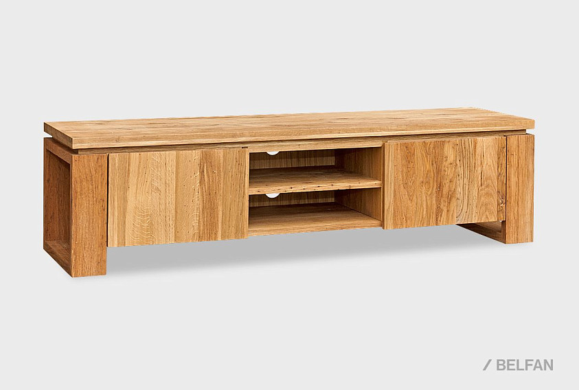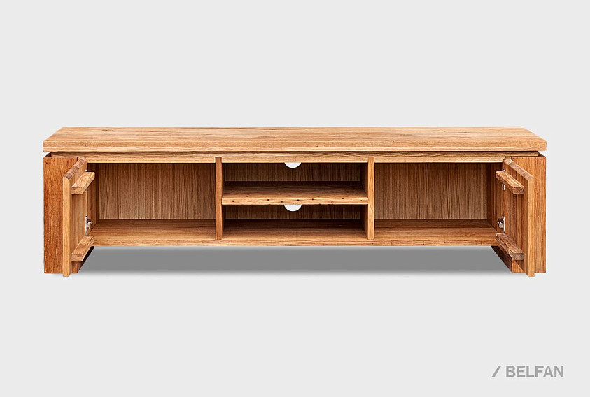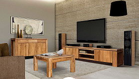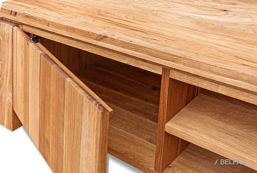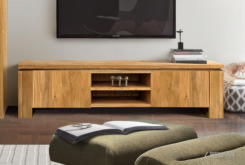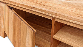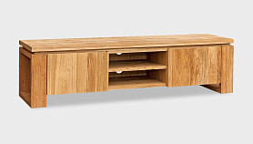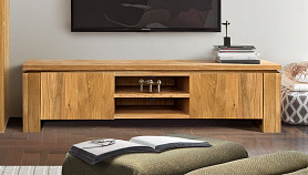 При всей погруженности в традиции, тумба под ТВ «Берген» В-150, выполненная в стиле Лофт, является в то же время очень актуальной и модной. Ее центральная часть состоит из двух полок, на которых удобно разместится современная техника, а в задней стенке есть два отверстия, благодаря которым, провода от аппаратуры не будут портить внешний вид. Тумба очень вместительна, ее крайние секции закрываются с помощью дверок, что позволяет предотвратить попадание пыли внутрь. Материал, из которого выполнено изделие, максимально экологичен – массив дуба, пропитанный только бейц-маслом.