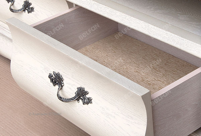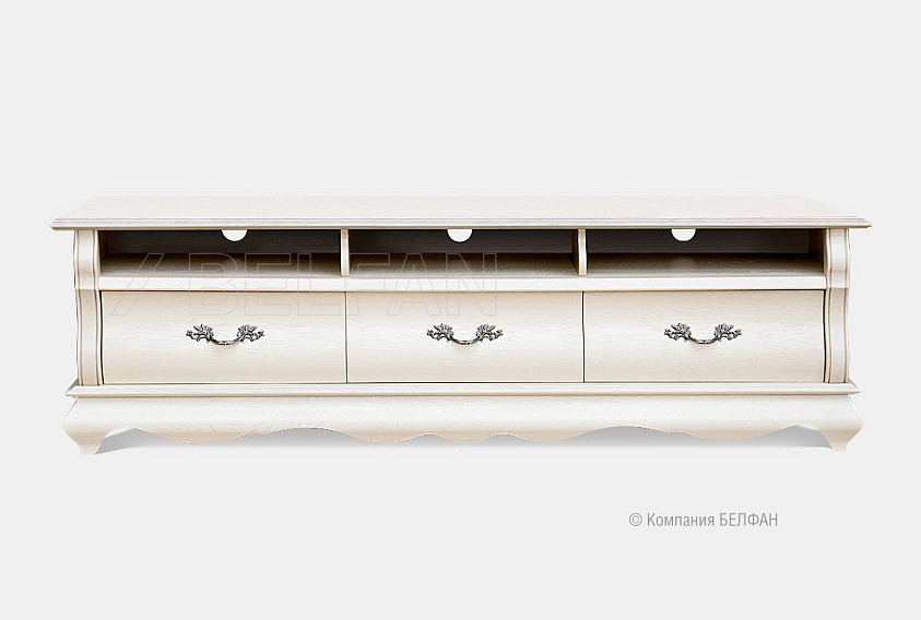 Утонченная тумба под ТВ из коллекции «Оскар» (Oskar) идеально дополнит интерьер современной гостиной либо столовой. Мебель, выдержанная в современном классическом стиле, характеризуется плавными линиями и продуманностью каждой детали. В схожих с классическими формах прослеживается мягкость и гармония. Изделие выполнено из массива дуба, поэтому помимо красивой текстуры отличается повышенной прочностью. В коллекции представлены тумбы цвета «белая эмаль с темной патиной», «амбэр с белой патиной» и «классик». Дно выдвижных ящиков отделано велюром.