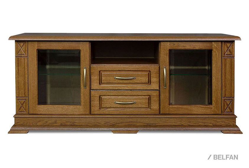 Тумба под ТВ «Верди Люкс ТВ2» подойдет как для загородных домов, так и для небольших квартир. Удобная высота позволит комфортно смотреть телевизор, а открытая ниша – поставить сопутствующую технику. В выдвижные ящики Вы сможете положить диски и разную мелочь, которую хочется спрятать от посторонних глаз. Две ниши с зеркальными фасадами придают изделию утонченности и «воздушности», не позволяя лишним объемам перегрузить «образ».