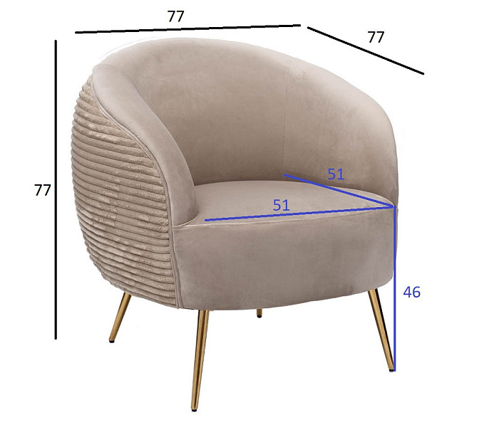 48MY-2582 BEG GO Кресло велюр бежевый 77*77*77см мет.ножки