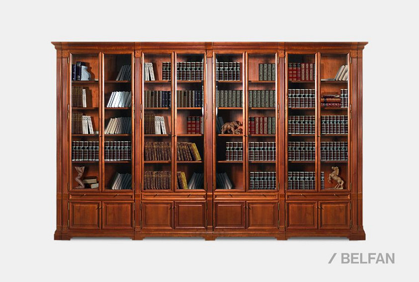 Набор мебели для библиотеки из коллекции "Престиж" 17.4 участвует в создании классического пространства, в котором царит атмосфера уюта и безмятежности. Изготовленный из массива и шпона берёзы, набор из четырех секций отличается богатой текстурой дерева и благородным, сдержанными цветом. Карниз и пилястры украшены резными элементами, в центре набора размещаются выдвижные ящики. За большими стеклянными дверцами можно разместить все ценное для души хозяина – интересные книги, памятные вещицы и любимые фотографии.