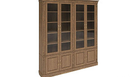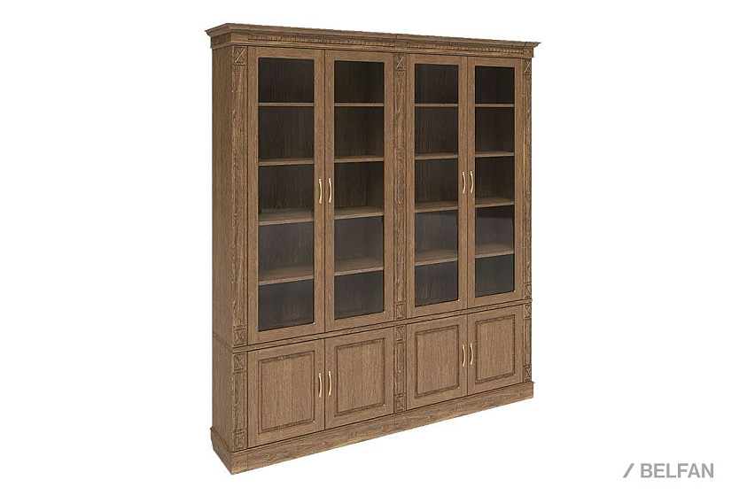 Этот набор мебели для библиотеки из коллекции «Верди Люкс» обязательно понравится страстным книголюбам. Благодаря размерам шкафа, семейная библиотека, собиравшаяся десятилетиями, без труда поместится на его полки, которые регулируются по высоте. Верхняя секция оснащена стеклянными дверками, и Вы сможете без труда найти нужное издание. Фигурный цоколь и резные пилястры дополняют образ изделия, делая его законченным.