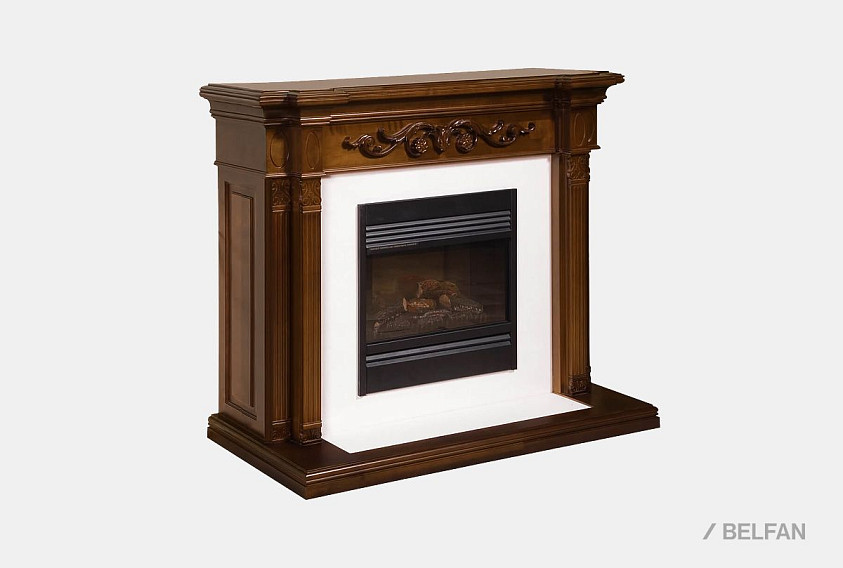 Камин - важная деталь гостиной в классическом стиле. Элегантная декоративная панель под камин "Престиж", изготовленная из высококачественного массива и шпона берёзы, станет прекрасным дополнением к интерьеру библиотеки "Престиж". Замысловатые узоры, словно паутинка окутывающие все его резные детали, выглядят произведением искусства. Середина портала выдвинута вперед, что позволяет приблизиться к огню и наслаждаться его окутывающим теплом в холодные зимние вечера.