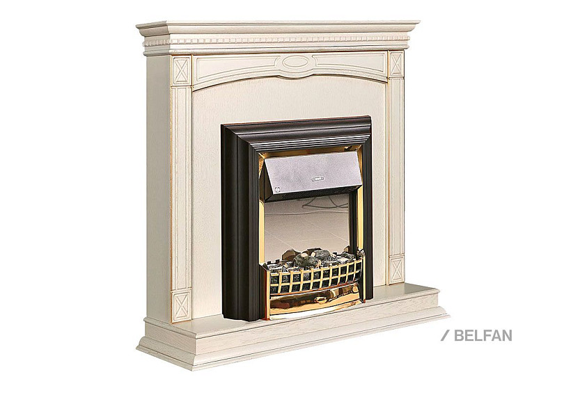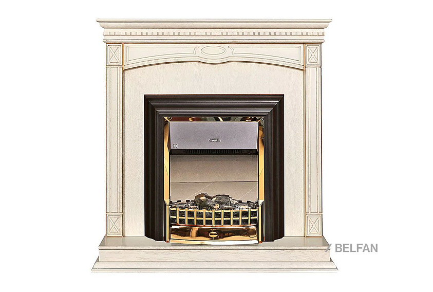 Подставка декоративная под камин "Верди Люкс 1"; слоновая кость с золочением