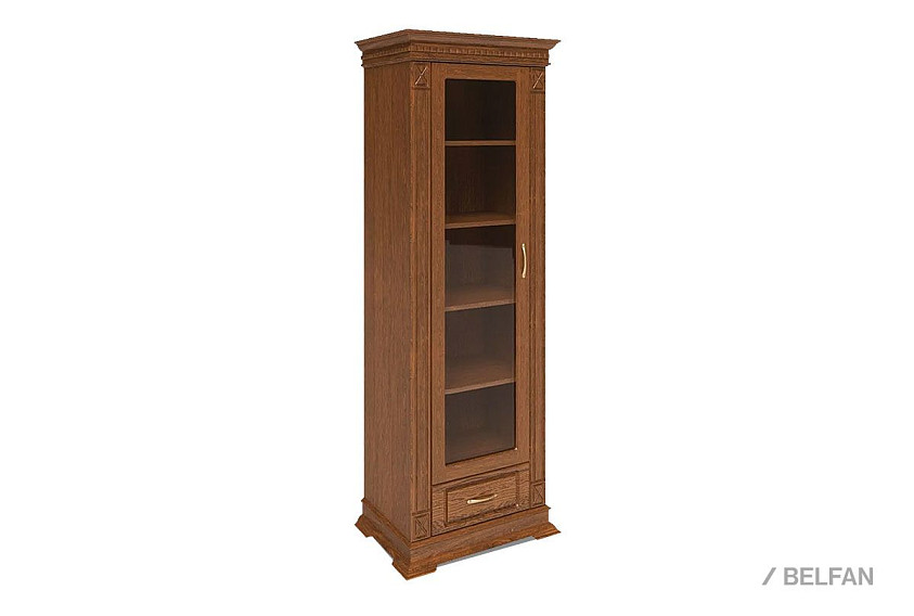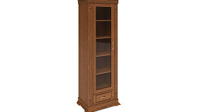 Шкаф из коллекции «Верди Люкс» станет отличным решением для гостиной, меблированной в классическом стиле. В него Вы можете поставить книги, фоторамки, сувениры из поездок, а в небольшой выдвижной ящик положить одежду. Декоративная резьба на пилястрах и фигурный цоколь подчеркивают изысканность, свойственную классическому стилю, а благородные оттенки крашения подчеркнут вкус владельца.