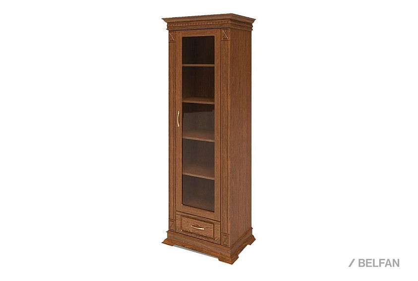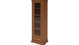 Шкаф из коллекции «Верди Люкс» станет отличным решением для гостиной, меблированной в классическом стиле. В него Вы можете поставить книги, фоторамки, сувениры из поездок, а в небольшой выдвижной ящик положить одежду. Декоративная резьба на пилястрах и фигурный цоколь подчеркивают изысканность, свойственную классическому стилю, а благородные оттенки крашения подчеркнут вкус владельца.