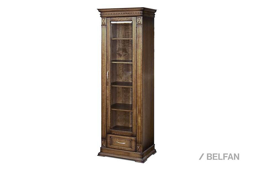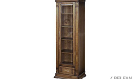 Шкаф из коллекции «Верди Люкс» станет отличным решением для гостиной, меблированной в классическом стиле. В него Вы можете поставить книги, фоторамки, сувениры из поездок, а в небольшой выдвижной ящик положить одежду. Декоративная резьба на пилястрах и фигурный цоколь подчеркивают изысканность, свойственную классическому стилю, а благородные оттенки крашения подчеркнут вкус владельца.