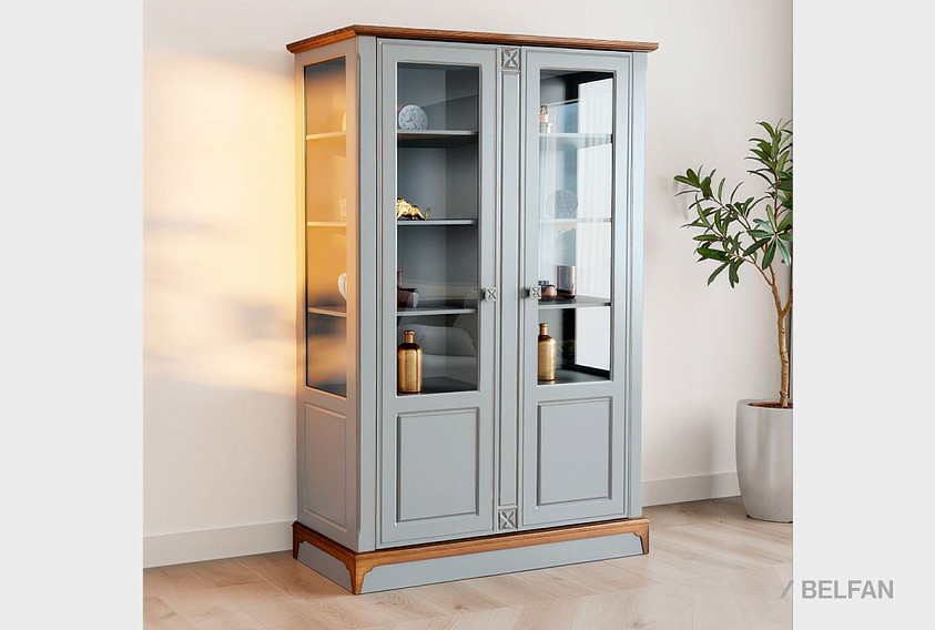 Шкаф с витриной 2-х дверный «Бриансон»; муссон+дуб