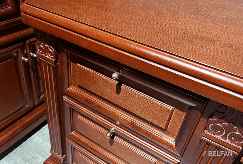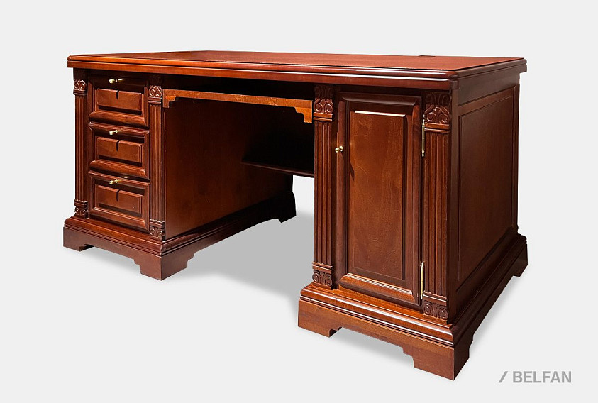 В классическую коллекцию "Престиж" входит удобный и комфортный компьютерный стол. Непревзойденное качество древесины (берёзы) и утонченное крашение "мокко" придают этому предмету интерьера классическую строгость и современную практичность. Грамотная работа с цветами и фактурами позволяет столу прекрасно сочетаться с разностилистической мебелью. Широкий арсенал ящичков и отделений обеспечит хранение всех документов в безупречном порядке.