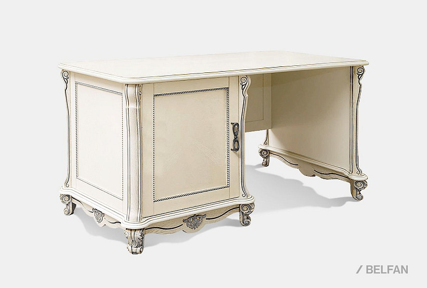 Стол письменный "Алези 1" (1 тумба слева); слоновая кость с серебром