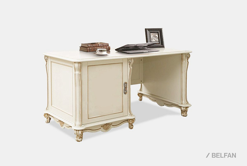 Стол письменный "Алези 1" (1 тумба слева); слоновая кость с золочением