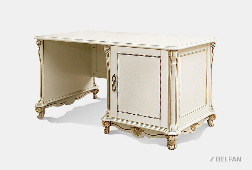 Стол письменный "Алези 1" (1 тумба справа); слоновая кость с золочением