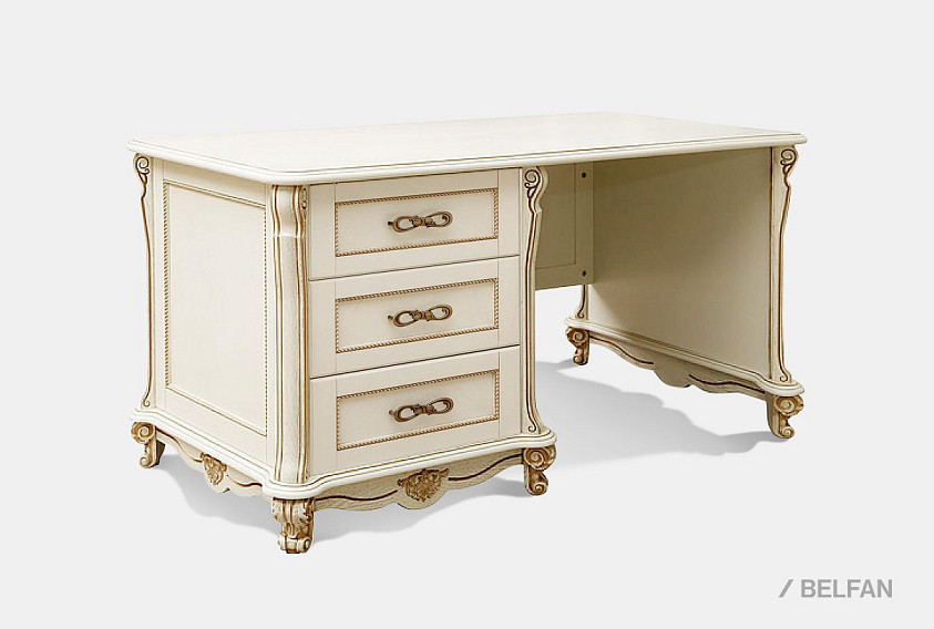 Стол письменный "Алези 1" с ящиками (1 тумба слева); слоновая кость с золочением