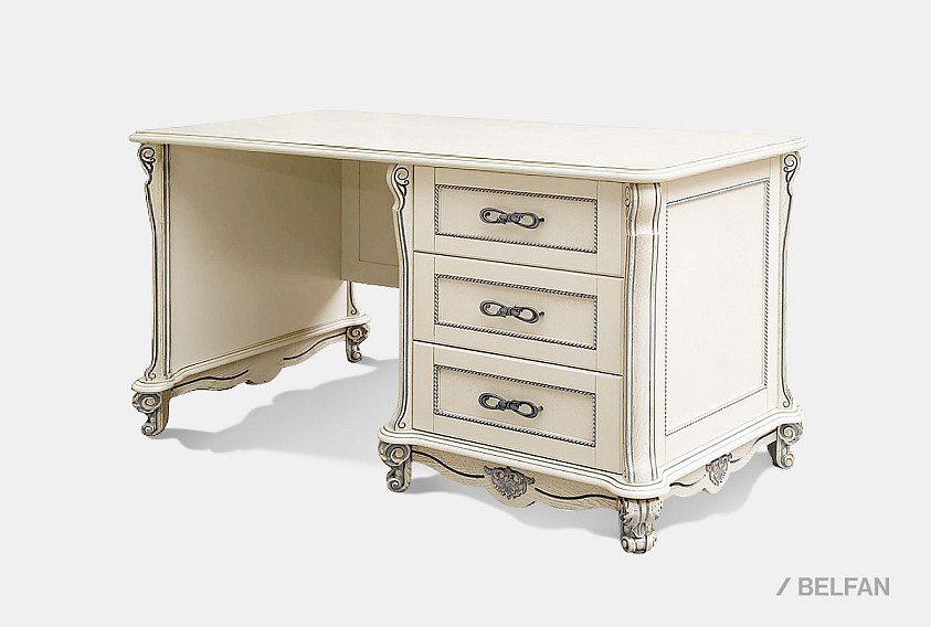Стол письменный "Алези 1" с ящиками (1 тумба справа); слоновая кость с серебром