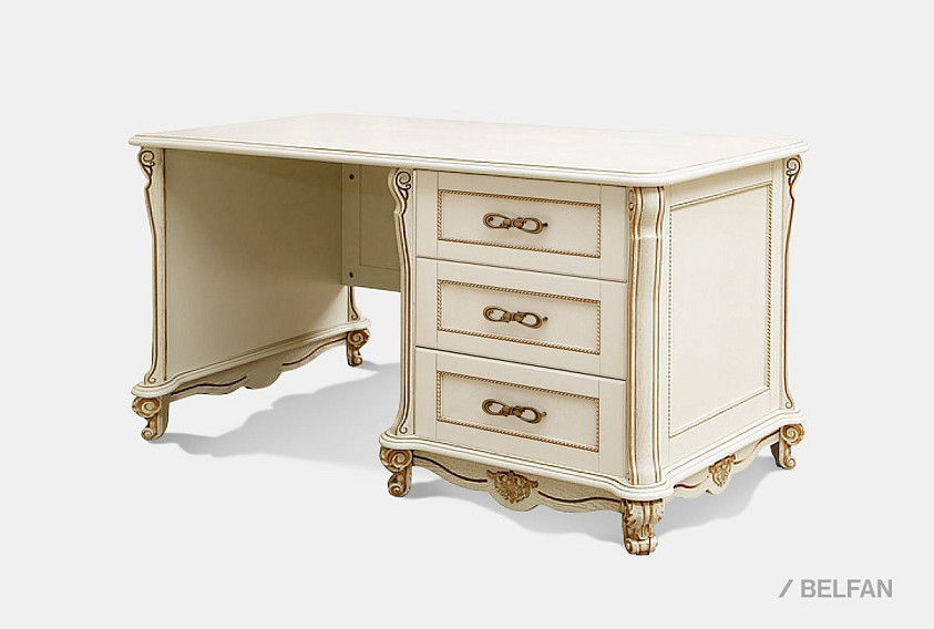 Стол письменный "Алези 1" с ящиками (1 тумба справа); слоновая кость с золочением