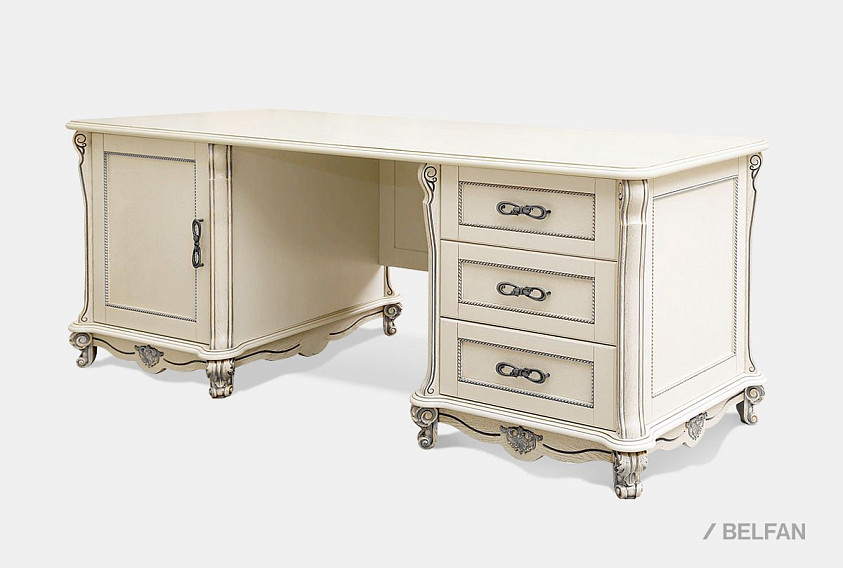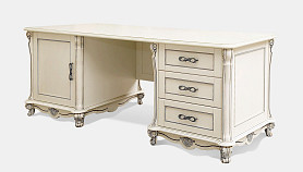 На что в первую очередь Вы обращаете внимание, когда заходите в чей-то кабинет? Конечно, на письменный стол. Задумываясь об обустройстве домашнего кабинета, присмотритесь к столу из коллекции «Алези» (Alezi) . Основательность и массивность компенсируются обилием декоративных элементов, которые «смягчают» образ. Благородные оттенки «слоновая кость» и «античная бронза» подчеркивают не только оригинальный дизайн стола, но и статус его владельца.