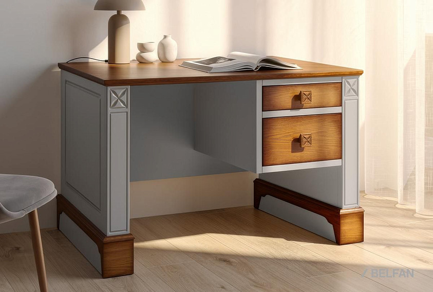 Однотумбовый письменный стол Brianson (тумба справа) – добротный и стильный, сочетает в себе оригинальный дизайн и практичность выполнен из массива и шпона дуба, тонированный в 2 оттенка: «муссон+дуб» и «жемчуг + дуб». Стол «Бриансон» оснащен двумя выдвижными вместительными ящиками с направляющими полного выдвижения