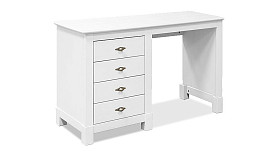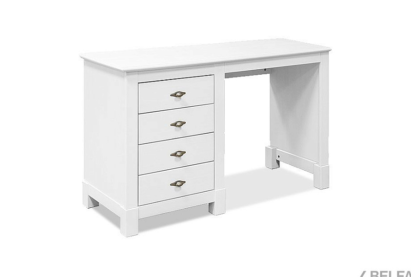 Стол письменный «Рауна» 04 с одной тумбой и 4-мя ящиками из массива сосны для вашего дома в стиле Прованс. Это недорогой письменный стол с ящиками, белый дизайн которого идеален для модного скандинавского стиля. Его можно поставить в кабинете, небольшой квартире-студии или даже комнате малыша. Выполнен полностью из массива сосны.