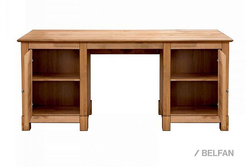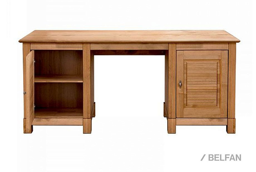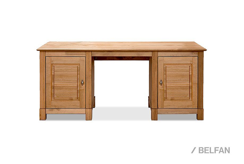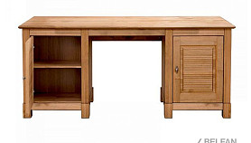 Стол письменный «Рауна» 20 с двумя тумбами выполнен из сертифицированного массива сосны (FSC®). Привлекательный дизайн подчеркивает видимая структура дерева. В результате офисная мебель гармонично вписывается практически в любой дизайн интерьера. Просторная рабочая поверхность позволяет разложить все необходимые офисные принадлежности, кроме того достаточно места и для компьютера с аксессуарами. Таким образом, письменный стол отлично впишется как в кабинет, так и для детской и подростковой комнаты. Благодаря обширному пространству для хранения, на полках за дверями, уместятся все документы, заметки и письменные принадлежности. Ручки имеют привлекательный винтажный оттенок.