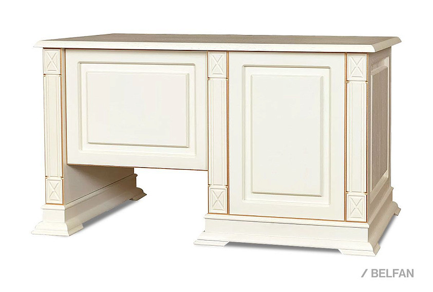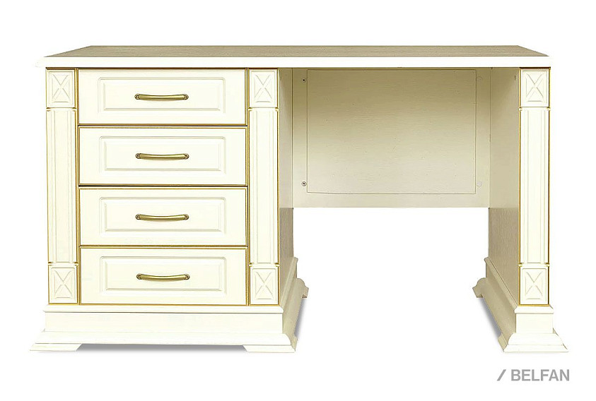 Стол письменный "Верди Люкс 9"; тумба слева; слоновая кость с золочением